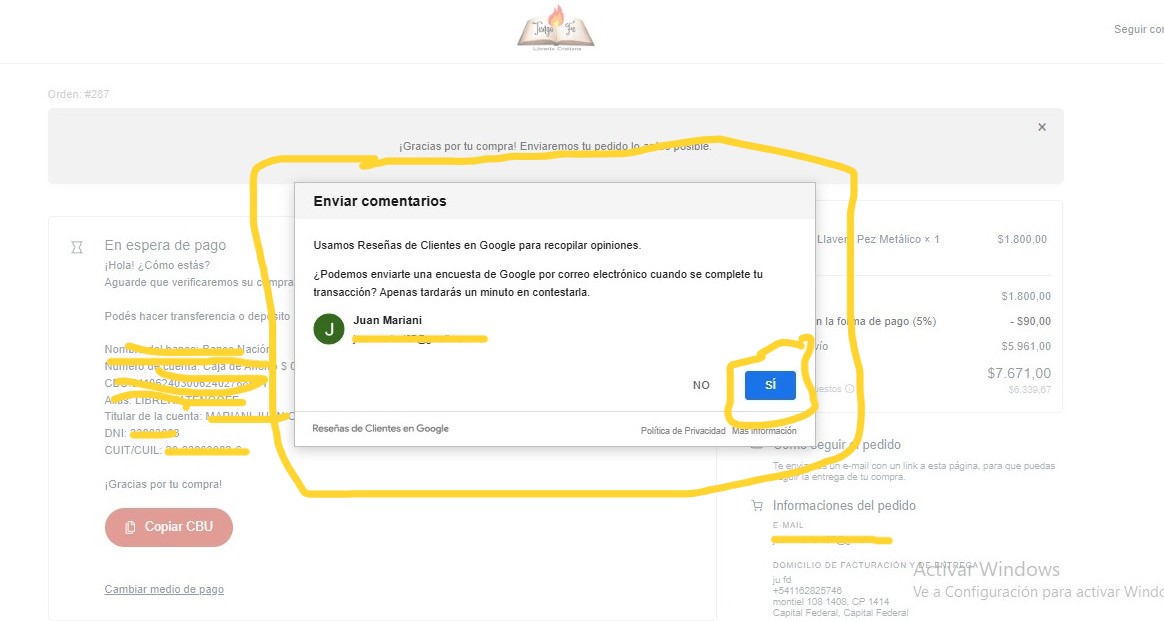 Tu opinion nos importa, cuando compras te saldra esta ventana por favor te pido que pongas que si para poder dejar tu opinion.